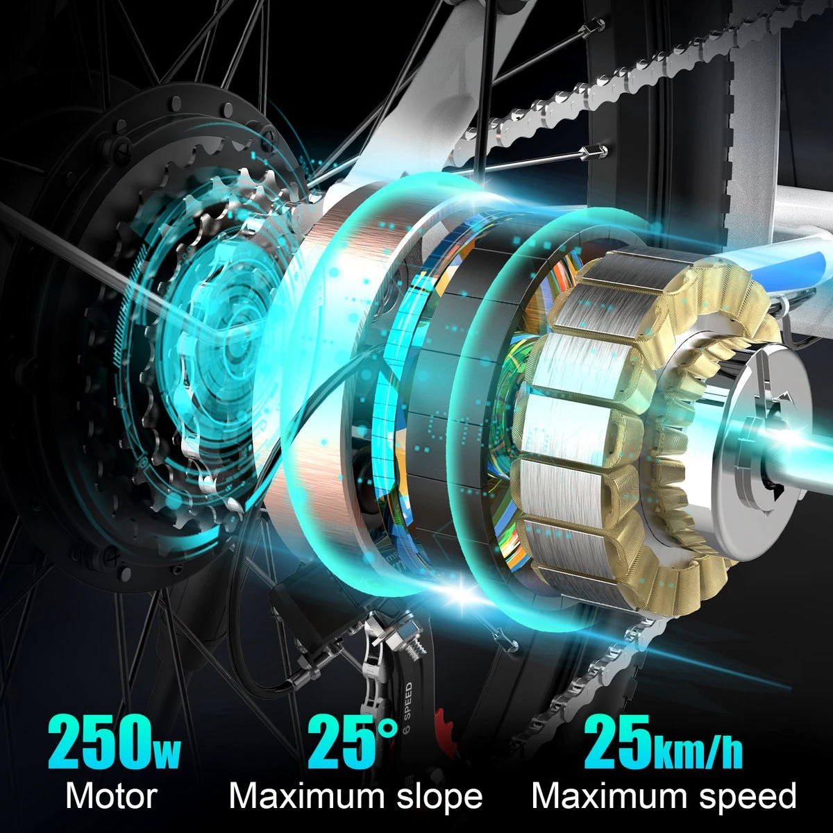 Uitstekende prestaties met afneembare batterij – Een hoogtepunt van de elektrische fiets is onze afneembare 10.4 AH grote capaciteit lithium-ion batterij die zorgt voor langdurige prestaties. Krachtige motor, sterke ondersteuning- 250 W 36 V motor- De hoogste snelheid kan oplopen tot 25 km/u en een maximale helling van 25 graden. In de bromfietsstand kun je gemakkelijk een afstand van 35 tot 90 km afleggen. Aangezien naast het totale gewicht ook het gekozen ondersteuningsniveau, de terreinomstandigheden en weersomstandigheden zoals tegenwind van invloed zijn, is het nauwelijks mogelijk een exacte indicatie te geven van de actieradius van e-bike accu’s.